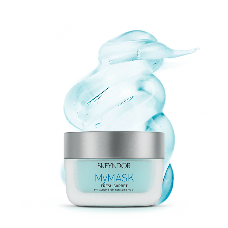Maschera viso idratante e remineralizzante con texture sorbetto. Con agenti idratanti e acqua glaciale norvegese. Facile da applicare dona freschezza alla pelle.